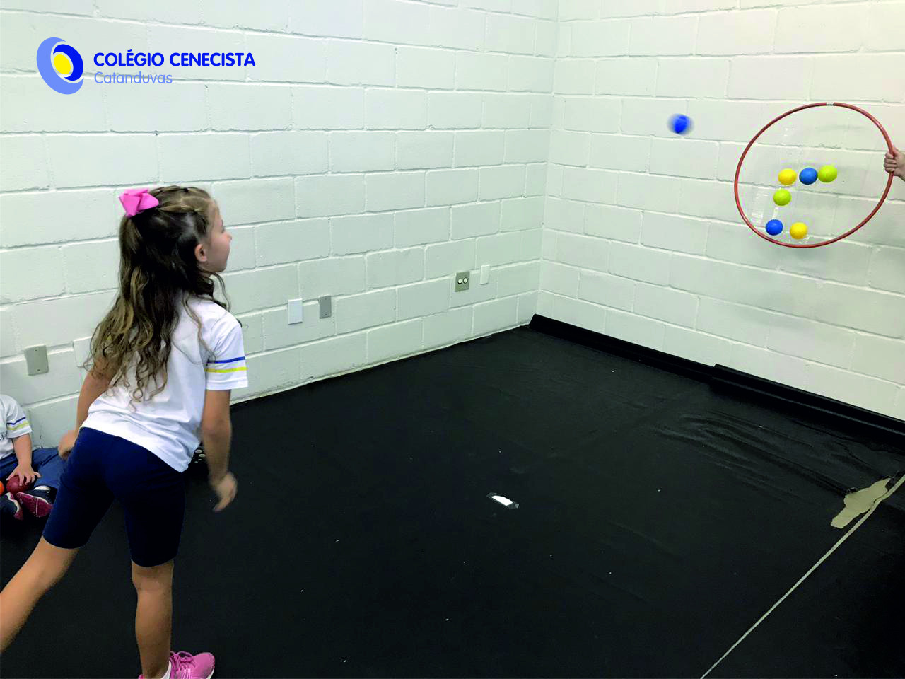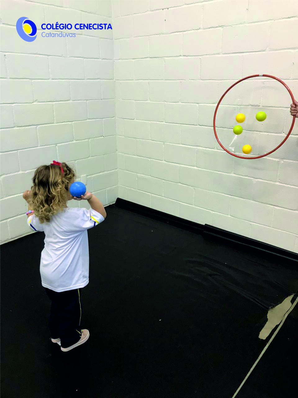 O trabalho com a psicomotricidade estimula a coordenação motora, equilíbrio, alongamento e a concentração. Assim, as crianças do período Integral do Colégio Cenecista Catanduvas, realizaram a atividade em que cada criança deveria acertar o máximo de bolinhas coloridas dentro de um bambolê. Logo, para estimular o trabalho com o cálculo cada cor tinha um valor determinado e as crianças fizeram os próprios cálculos para saber quantos pontos fizeram.