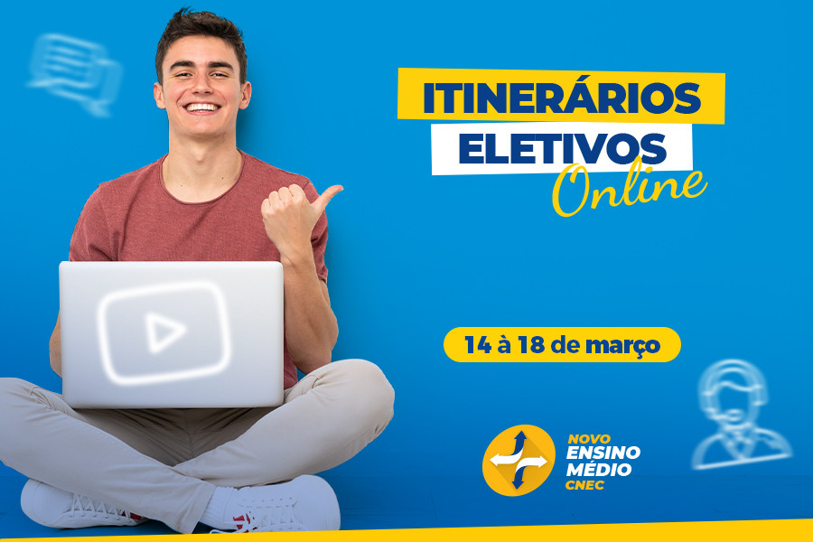 O Novo Ensino Médio já começou e oferece várias novidades que vão alavancar o seu conhecimento. Durante a próxima semana, entre os dias 14/03 e 18/03, a CNEC disponibilizará as primeiras aulas online dos novos itinerários Eletivos, com o objetivo dos alunos conhecerem as diferentes propostas de estudos.