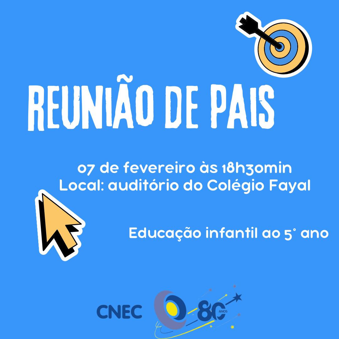 Dia 07 de Fevereiro de 2024 as 18:30 acontece a reunião de pais no auditório do colégio Fayal.