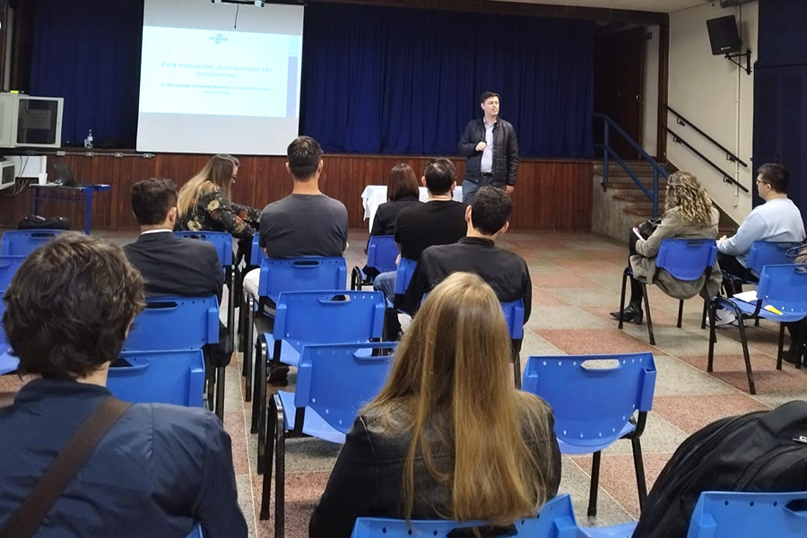 No evento de início do semestre, recebemos o excelente palestrante Ezequiel Rosa do SEBRAE-RS, para uma conversa sobre Empreendedorismo e Inovação.