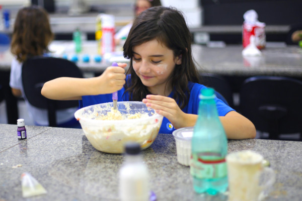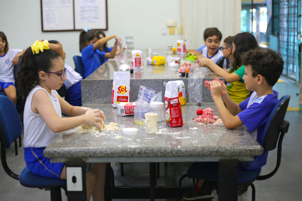 Com a supervisão da professora Camila Castro, todos botaram a mão na massa e desenvolveram a ação que faz parte da disciplina de ciências, observando e experimentando todos os aspectos de cada matéria-prima.