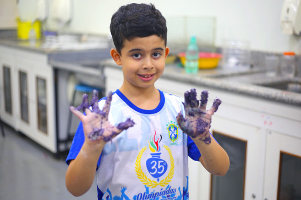 Os alunos se lambuzaram e soltaram a criatividade, vivenciando assim, mais uma experiência de aprendizado lúdico e interativo.
