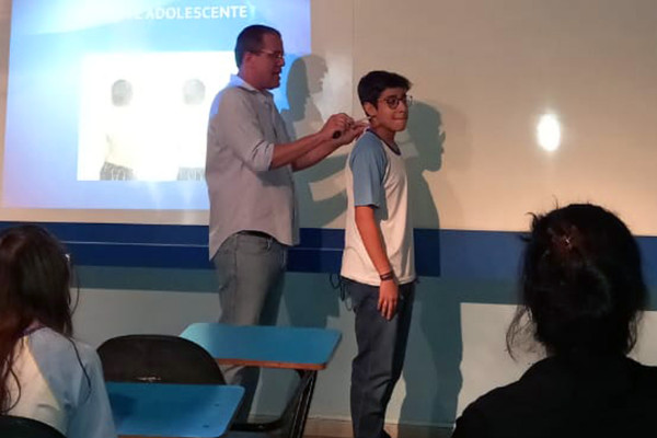 A palestra abordou a necessidade de conscientizar as crianças e adolescentes sobre os sinais e sintomas de dor lombar e desvio na coluna, causados por posturas incorretas ao se sentar ou durante o uso de celulares, computadores e mochilas. Também foram citadas as maneiras corretas de praticar tais atividades e evitar assim, futuras lesões sérias.