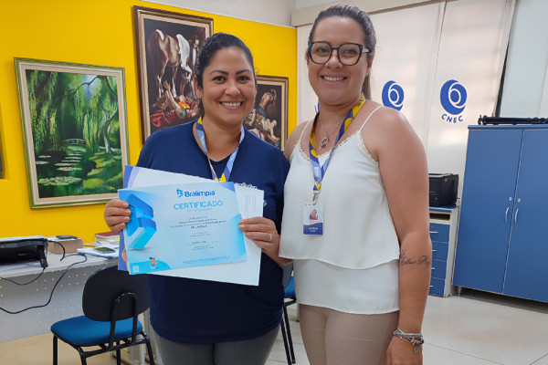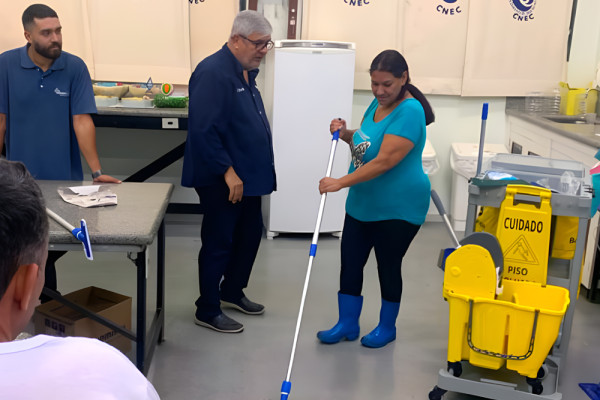 Os cursos de treinamento foram fornecidos pelas empresas Megalimp e Bralimpia, com os temas “Produtos Químicos de Limpeza da Megalimp” e “Equipamentos de Limpeza”.