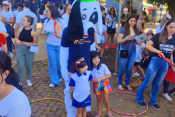 Contamos também com a presença de estudantes do curso de Medicina Veterinária da Uniube, que levaram o mascote e cartilhas com informações sobre o Projeto Fiel Camarada, com dicas muito importantes sobre castração e cuidados com animaizinhos domésticos.