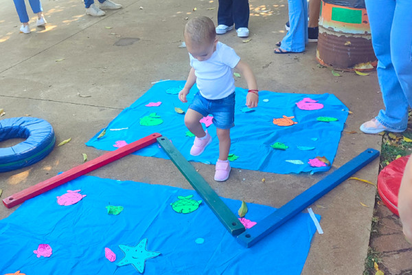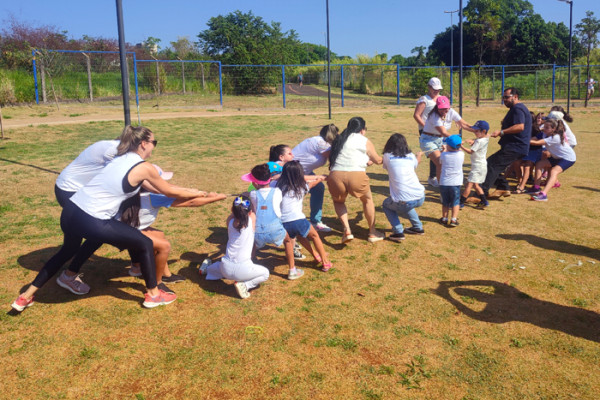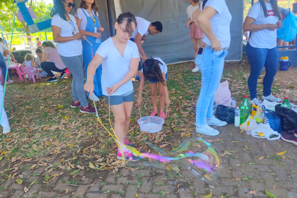 As professoras presentes agitaram as crianças com brincadeiras recreativas para todas as idades, pinturas no rosto, bolhas de sabão, cabo de guerra, circuitos, bambolês e muito mais.