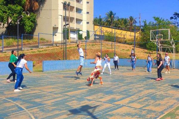 Nosso diretor, Djalma Pereira, deu as boas vindas a todos e iniciou oficialmente a manhã. Nossos professores de Educação Física também estavam presentes, e organizaram atividades de alongamento, dança e jogos variados.