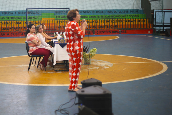 As professoras Rowena, Lays e Tia Vera foram carinhosamente recepcionadas em seguida, e falaram sobre aspectos históricos e sociais desta data tão importante na conquista dos direitos fundamentais das mulheres na sociedade.