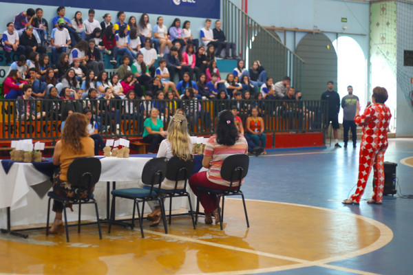 Os alunos das turmas de 5º Ano prepararam uma apresentação emocionante e convidaram os colegas das outras turmas para assistir.