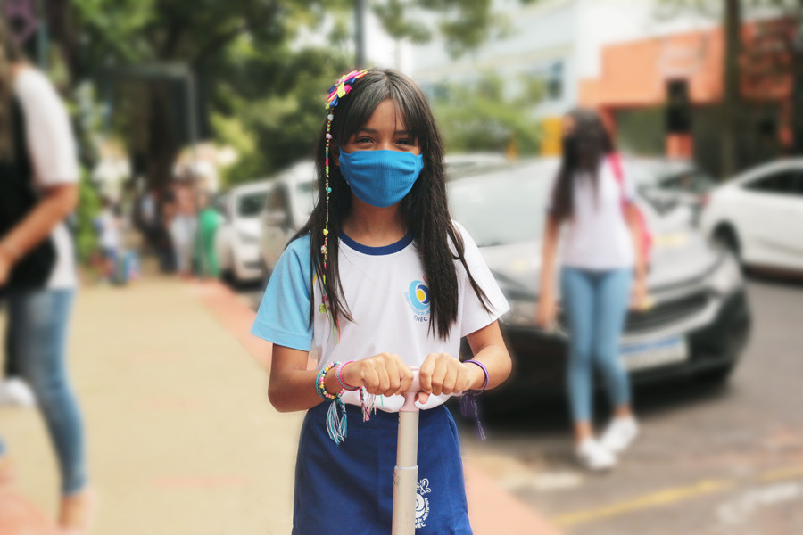Na Educação Infantil, por exemplo, a preocupação é garantir a segurança das crianças sem perder o foco lúdico, o que as motiva dentro de sala de aula. "Precisamos manter o nosso espaço leve e 'brincante', que acalma a tensão desse momento e faz com que a criança sinta prazer de estar no Colégio”, explica a coordenadora da Educação Infantil Joessiani Garcia.