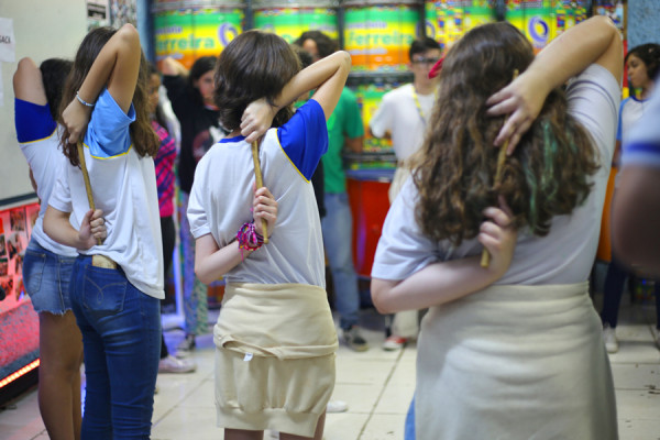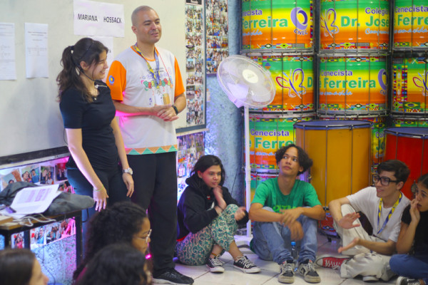 A ex-aluna Mariana Monteiro Vieira da Rocha Hossack esteve presente para realizar uma oficina de fisioterapia preventiva na percussão.