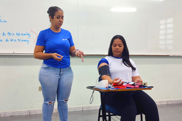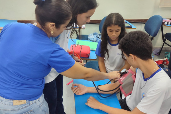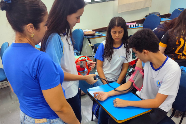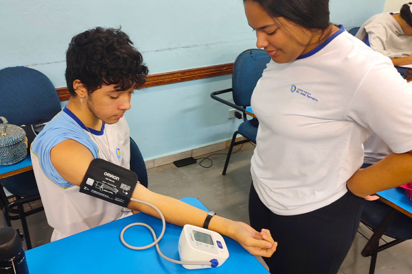Os jovens também tiveram contato com dois tipos de aparelho de medição de pressão arterial: o manual e o digital.