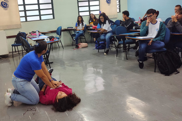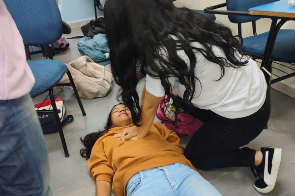 Eles aprenderam a avaliar sinais vitais como pulso, batimentos cardíacos e frequência respiratória, assim como a realização de massagem cardíaca básica e a importância da urgência de entrar em contato rapidamente com atendimento médico especializado em casos de emergência.