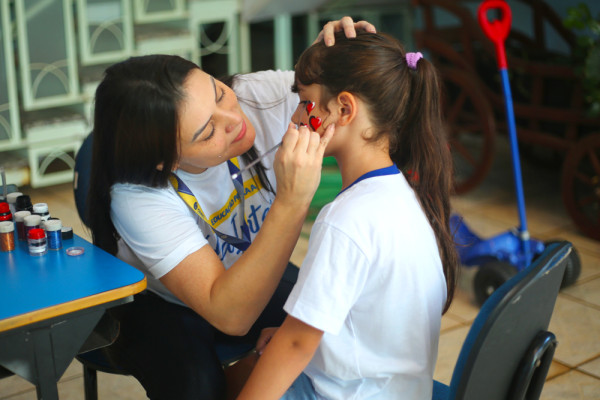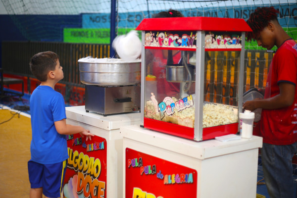 As crianças também puderam pintar os rostinhos com corações e símbolos dos seus heróis preferidos e brincar na quadra com brinquedos diversos, além de se deliciar com pipoca quentinha e algodão doce feitos na hora.