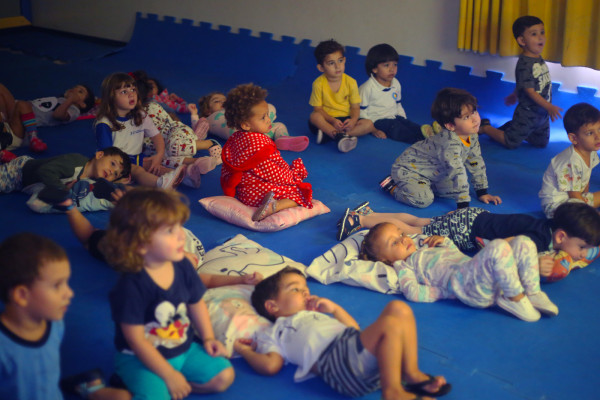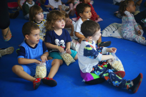 Para os pequeninos que não podem ir ao cinema, teve Festa do Pijama na nossa salinha de lousa digital, onde rolaram os desenhos preferidos da criançada acompanhados daquela pipoquinha que não pode faltar.