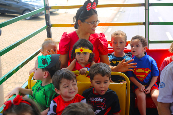 No dia seguinte, os pequeninos das salinhas de Berçário e Maternais I, II e III vieram com as suas fantasias preferidas para curtir um passeio de trenzinho pela cidade.