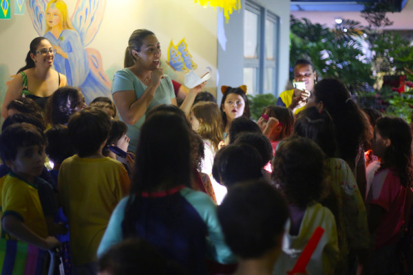 Já os alunos do 5º Ano começaram a noite com gincanas e jogos na quadra, organizados pelos professores de educação física, seguidos também da eletrizante caça ao tesouro e finalizando a noite com muita música na baladinha do pátio.