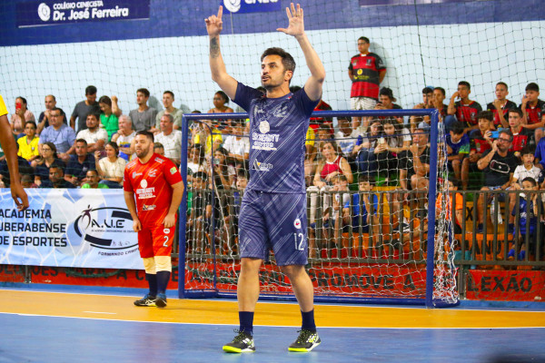 Jogador de futsal Falcão participa de partida especial na quadra poliesportiva do Zezão.