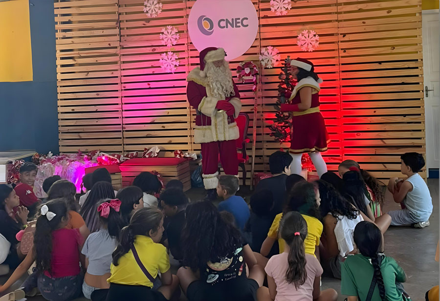 A magia natalina tomou conta do Lemos Cunha e o colégio está realizando uma programação cultural inesquecível para a criançada neste mês de dezembro. Com um cenário repleto de elementos decorativos, a emocionante chegada do Papai Noel, iluminação sincronizada com músicas natalinas e a tradicional árvore de Natal, criando um ambiente de magia e inspiração, quem passar pelo local será transportado para o mundo mágico do Natal. Um espetáculo visual inesquecível, perfeito para registros e memórias que irão encantar pessoas de todas as idades.