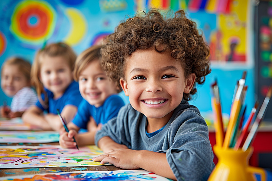 Por toda a escola, destaca-se a presença de pinturas artísticas que estimulam a criatividade e expressão das crianças, tornando o ambiente acolhedor e inspirador. Isso contribui para um clima escolar positivo e favorece o processo de ensino e aprendizagem, refletindo o cuidado na formação integral das crianças.