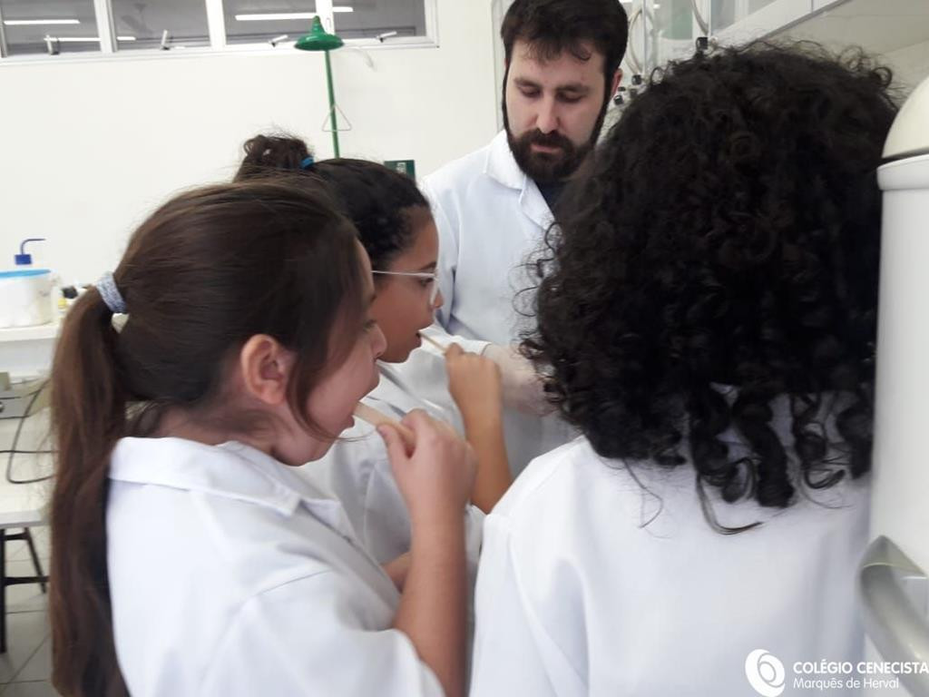 No dia 25, os alunos do 3º ano do Ensino Fundamental Nível I, do Colégio Cenecista Marquês de Herval, sob a orientação da Profª. Clarissa Antunes Berton, exploraram os ambientes do colégio, como os laboratórios de Anatomia e Microscopia, juntamente com o Prof. Matheus Viganó, no qual consolidaram os conhecimentos sobre as células e o corpo humano, conteúdos desenvolvidos na disciplina de Ciências.