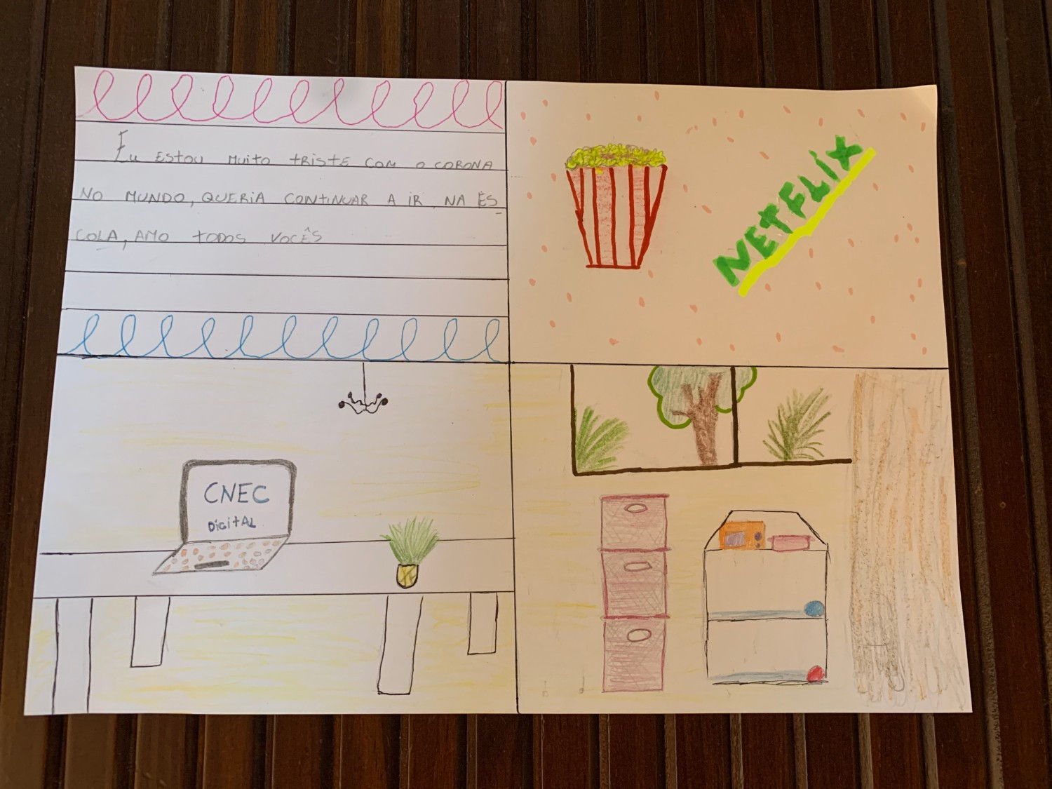 Em tempos de quarentena é importante estar atento as diferentes atividades que possam ser realizadas com o objetivo de manter a saúde física e mental. Os alunos da turma FN42 estão com aulas remotas, assim como toda a rede cnec, e foram convidados a mostrar, através de desenho, suas rotinas em no momento em que ficar em casa é essencial para a saúde da população.
