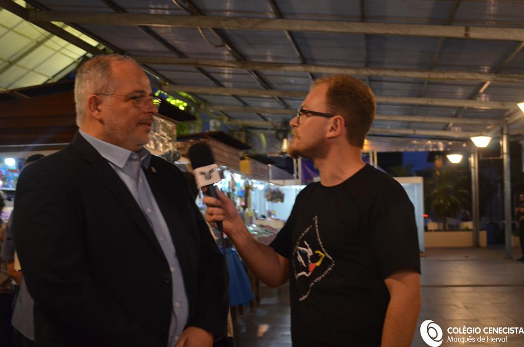 O diretor do Colégio Marquês e reitor do Centro Universitário Cenecista de Osório, Prof. Juarez Moraes Ramos Junior e o Pró-reitor de Planejamento e Administração da UNICNEC, Prof. Alexandre Ramos, estiveram presentes na abertura oficial, prestigiando o evento e o estande da instituição.