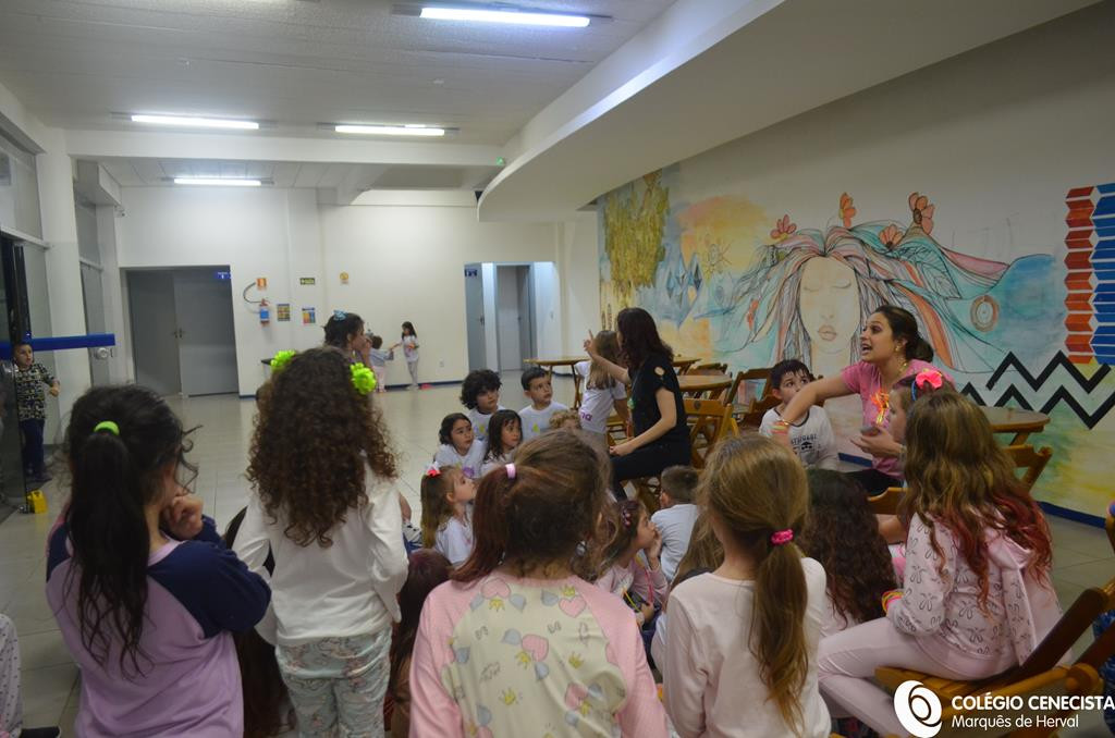 No último dia 4, o Colégio Cenecista Marquês de Herval realizou mais uma edição da Noite do Pijama, nas dependências do colégio. Segundo a coordenadora da Educação Infantil, Profª Michele Cardoso, a Noite do Pijama trouxe atividades que promovem expectativas e aventuras que marcam o imaginário das crianças. “É uma experiência vivida que contribui para a aquisição da autonomia e crescente independência, e, especialmente pela formação de laços afetivos cada vez mais estreitos, tanto com os colegas, como com as professoras” afirma.