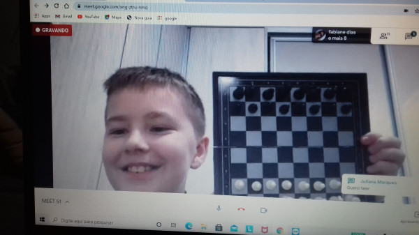 Nesta terça-feira, 08, os alunos da turma FN51 do Colégio Cenecista Marquês de Herval, realizaram oficinas pela plataforma Google Meet, juntamente com a Profª Vanessa Miguel. Nesta atividade, os alunos compartilharam suas habilidades e potencializaram suas competências, através de jogos de xadrez, talentos manuais, indicação de leitura, música e dança. Os alunos também realizaram a atividade de culinária, com a Oficina de Ta Day.