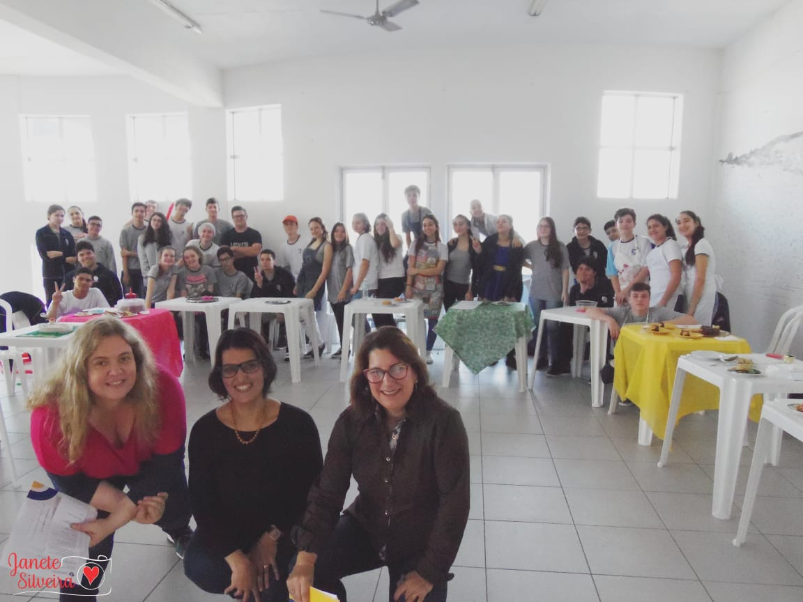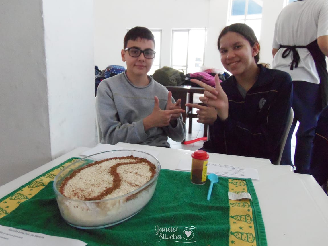 Os alunos se dividiram em duplas e foram avaliadas pela parte escrita/oral, motivação, organização e criatividade, e também pelo sabor do prato. A Profª Helena Meinhardt, Profª Débora Michelon e a coordenadora do Colégio Marquês, Profª Angelita Rocha participaram da atividade como juradas.