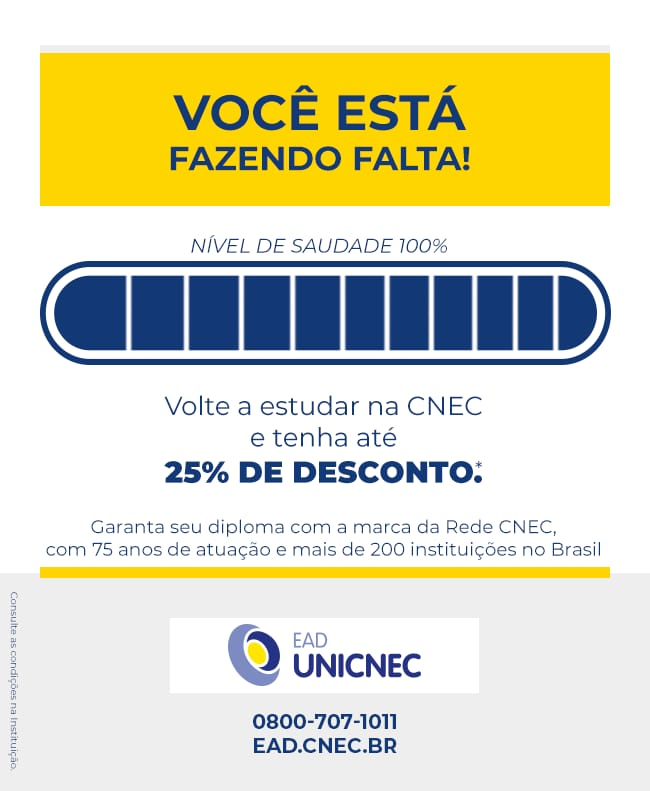 Volte a ser EAD CNEC e ganhe desconto de 25% até final do Curso.