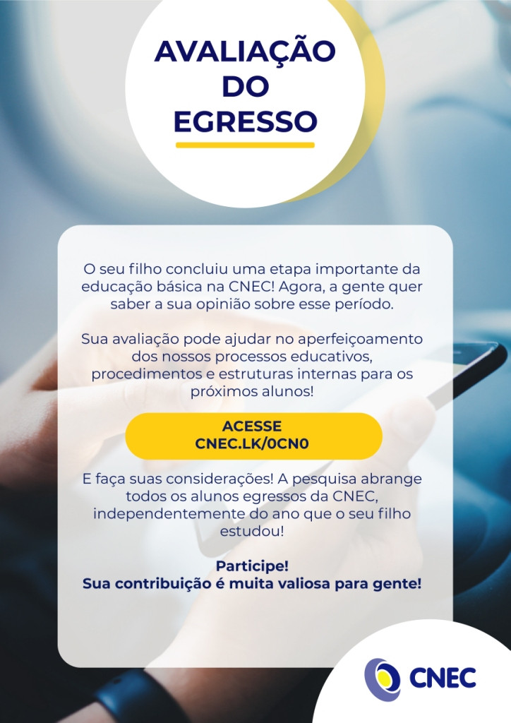 A pesquisa abrange todos os alunos egressos da CNEC, independentemente do ano que o seu filho estudou!