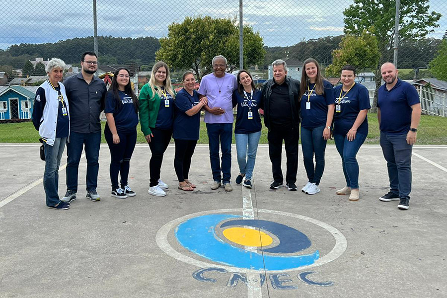 Afirmando mais uma vez os ideais de nosso fundador, Felipe Tiago Gomes, e o compromisso com a comunidade de Caxias do Sul e região, a diretoria da CNEC esteve na Escola Cenecista de Ensino Fundamental São Vicente. A equipe gestora da CNEC - liderada pelo diretor-presidente, Alexandre José dos Santos, acompanhado pelo vice-presidente, professor José Lima Santana, e por membros da mantenedora - foi recebida pela comunidade escolar na última semana, a fim de discutirem e programarem pontos cruciais para o desenvolvimento constante da unidade.